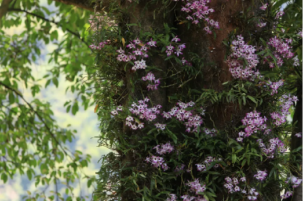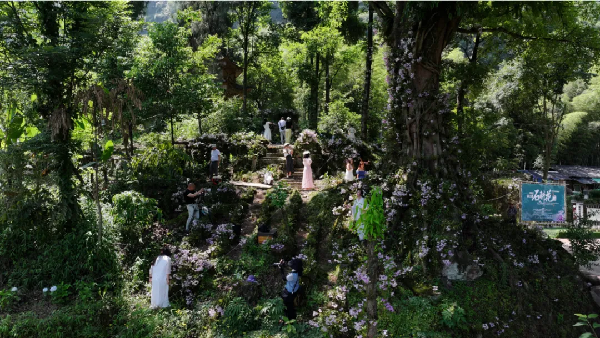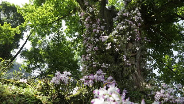1200亩石斛花全开成紫色海洋,其中一棵“夫妻同心树”成了顶流打卡点,游客石跃明专门带着老婆,从泸州驱车来拍照,直呼“好震撼!合江的旅游资源确实很丰富。”