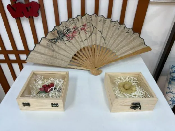 巧手制成的“夏布海棠花胸针”、“五瓣花胸针”,清雅如诗,气质不凡;素朴雅致的夏布折扇,摇动间皆是古风韵味。