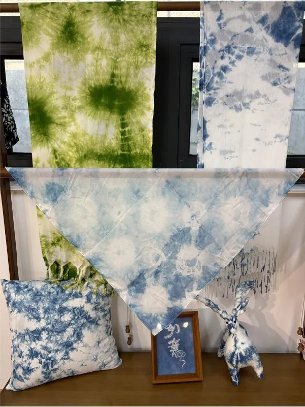 扎染通过纱、线、绳等工具对织物进行扎、缝、缚、缀、夹等多种形式组合后进行染色;蜡染制作方法主要以天然的核桃树皮或板蓝叶子作为植物染料,用蜡刀在手工纷织的麻布或棉布上进行描绘。
