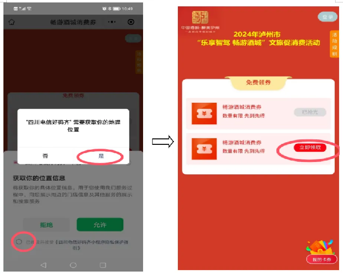 用户需在线下活动期间到展销活动现场使用微信或翼支付现场扫码,现场领取。每个用户每天可领1张券,活动日发放消费券数量有限,先到先得,领完为止。
