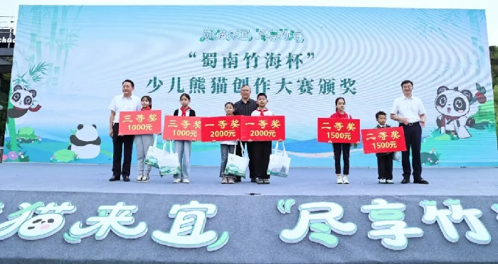现场为 “蜀南竹海杯” 大熊猫少儿绘画大赛