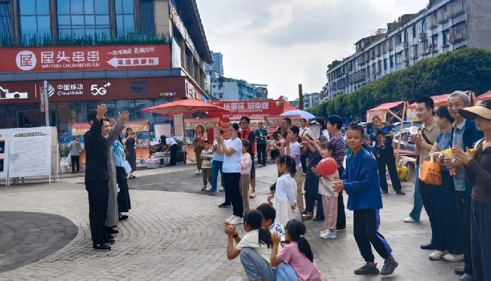 江安西街戏剧茶社广场系列主题展演吸引人流