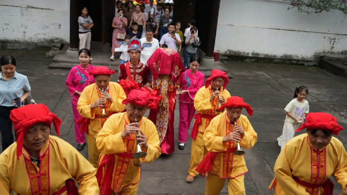 夕佳山民居景区推出“国庆游佳・民居韵更浓”系列民俗活动,整合古建筑微缩搭建、脸谱绘制、茶艺古筝表演、民乐演奏、婚俗展演与川剧表演等内容,配合五大民俗打卡区,成为区域人气高地。