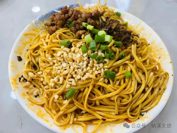 细碎的芽菜、葱花加上花生碎和哨子一起浇到刚刚出锅的面条上,香~他家不止面条还有猪儿粑、黄粑、白糕哦~小编最爱吃他家的生椒牛肉和辣鸡面,味道之霸道~