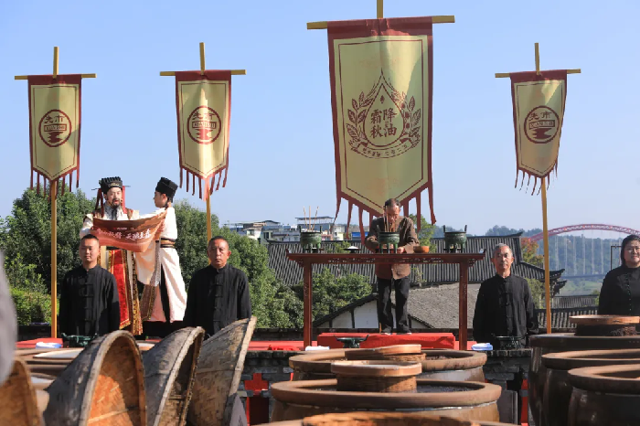 霜降节气,气温骤降,微生物活动趋缓,酱油的风味变得尤为醇厚、柔和。10月23日霜降,赤水河畔酱香弥漫,合江县先市酱油2025霜降秋油大典正式启幕。