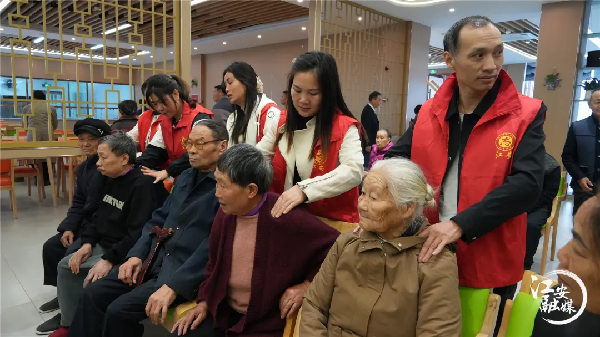 公寓内,志愿者们忙碌地为老人们提供贴心服务:有的屈膝为老人洗脚,轻柔地揉搓着双脚;有的细心地为老人修剪指甲,还不时叮嘱注意事项;有的则用专业手法为老人按摩肩颈,缓解身体酸痛,温馨的场景感染着现场每个人。