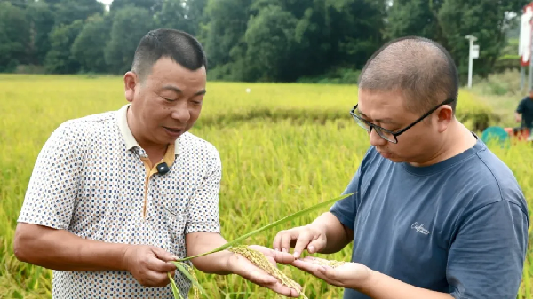 “你看,今年的再生稻的谷尖要长得多,也饱满得多,这个粒穗比去年好得多了,今年是肯定要增产的。”