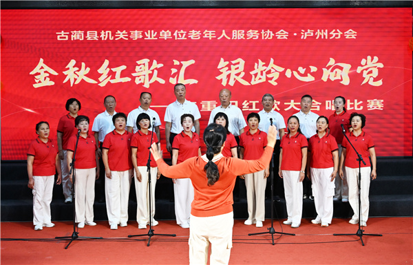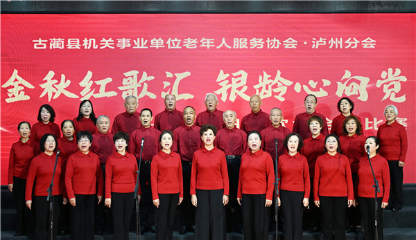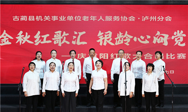 10月27日,古蔺县机关事业单位老年人服务协会泸州分会举办“金秋红歌汇 银龄心向党”庆重阳红歌大合唱比赛。参赛者精神抖擞,歌声嘹亮,用真挚的情感诠释着对党的热爱与忠诚,观众被深深感染,掌声雷鸣,欢呼声此起彼伏。此次比赛,不仅展示了参赛者的风采,更彰显了银龄一代对党的深厚情感。