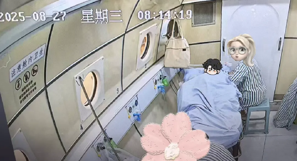 刚来到高压氧舱的时候,他的母亲总是在一旁默默陪伴。小鹏躺卧在担架上,嗜睡状态,不能言语,精神很差,眼神里充满了悲伤。但他的母亲依然坚强乐观,对儿子不离不弃,在小鹏生病的这一段时间都是衣不解带的照顾,任何事情都亲力亲为。看到这样的情形在场的医护人员都都为之感动和敬佩这位母亲。
