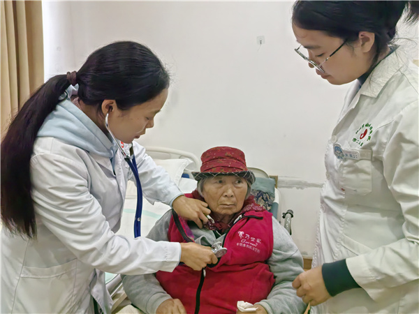 舞台下,泸州市第二人民医院的医护团队早已搭建好义诊服务点,为老人们提供免费健康检查与咨询服务。医护人员耐心为老人测量血压、血糖,细致解读体检报告,针对高血压、关节炎等老年常见疾病,给出用药指导与饮食建议;并向家属与工作人员普及应急知识,用专业服务为老人健康保驾护航。
