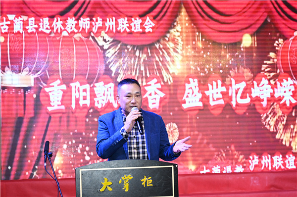10月29日重阳节,古蔺县退休教师泸州联谊会主办,联谊会烛韵艺术团承办主题庆祝活动。受古蔺县委教育工委书记,县教育体育局党组书记、局长罗富华委托,古蔺县教体局关工委执行主任、古蔺县民间文艺家协会主席刘春文到场作了讲话。