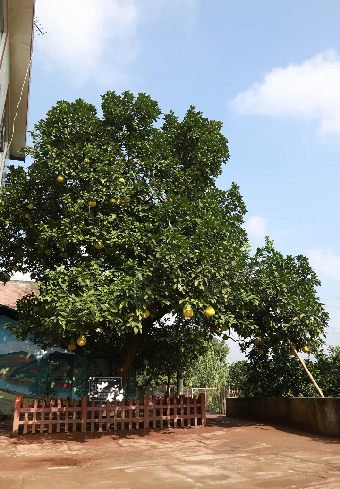 1942年,当地村民杨品三在“荒沟”这个地方种下几株柚苗。岁月流转,同伴们一个个离去,唯有她,倔强地活了下来,把根深深扎进这片土地。