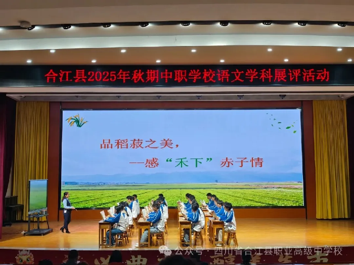 为深化中职语文教学改革,提升教师教学能力,展示语文教学成果,11月4日上午,“2025年合江县中等职业学校语文学科优质课展评活动”在合江职高演播大厅举行。本次活动以“聚焦核心素养,深化语文教学改革——打造中职语文高效课堂”为主题,全县中职学校语文教师齐聚一堂,共研共进。