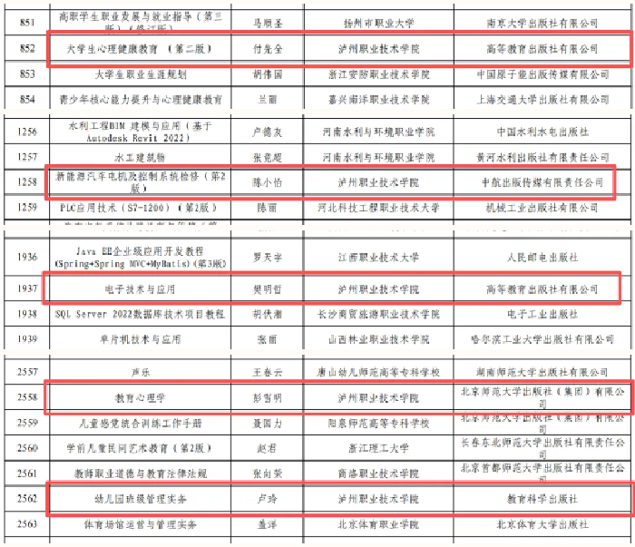 近日,教育部公布了第二批“十四五”职业教育国家规划教材评选书目名单,泸州职业技术学院《电子技术与应用》等5本教材成功入选,入选数在四川省高职院校中排名第4。