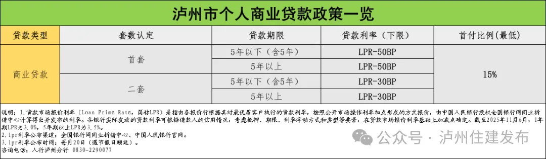 除了公积金政策,泸州市商业性住房贷款政策也持续发力。目前,首套住房按揭贷款最低利率仅3%(LPR-50BP),二套住房最低3.2%(LPR-30BP),且全市统一执行首套、二套住房15%的首付比例政策,大幅降低了购房的准入门槛。