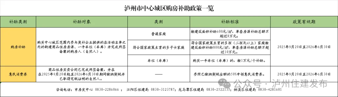 9月19日,泸州市出台进一步优化住房政策措施,涉及购房补贴、惠民消费券的发放等多项内容。