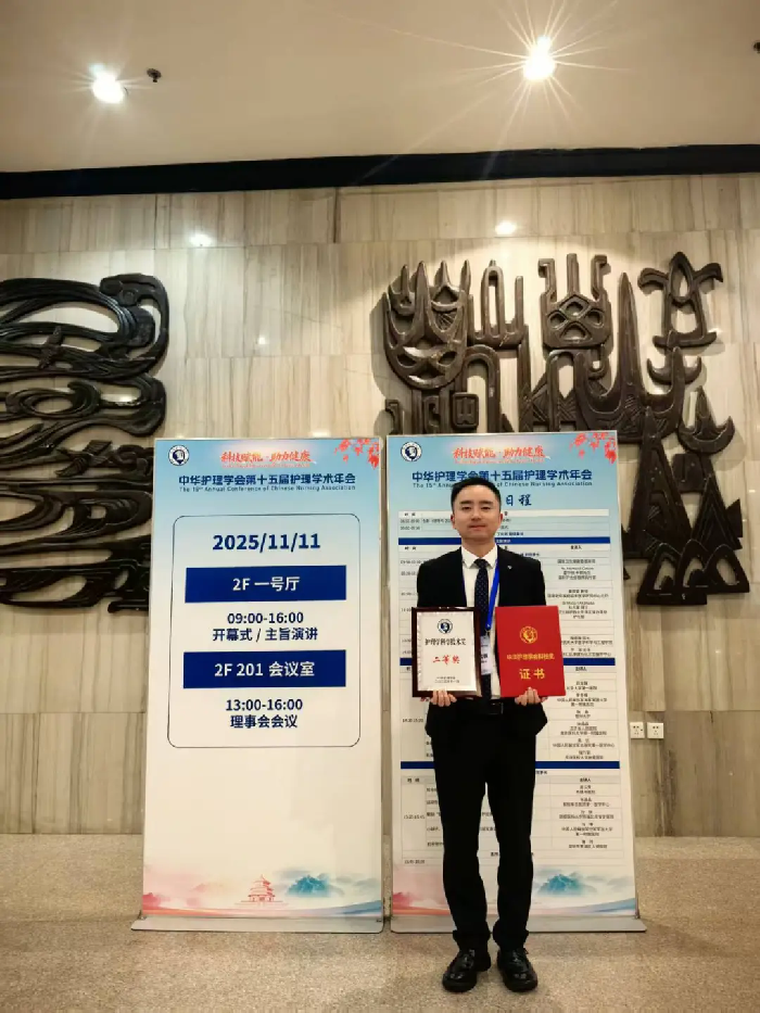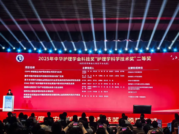 2025年11月11日,中华护理学会第十五届护理学术年会暨第十届“中华护理学会科技奖”颁奖典礼在北京国际会议中心隆重举行。由西南医科大学附属医院护理部黄厚强博士主研的项目《COPD肺康复主动护理关键技术研发与应用》荣获“中华护理学会科技奖”二等奖。这是西南医大附院首次获此殊荣,也是本年度四川省唯一获奖的研究类项目。