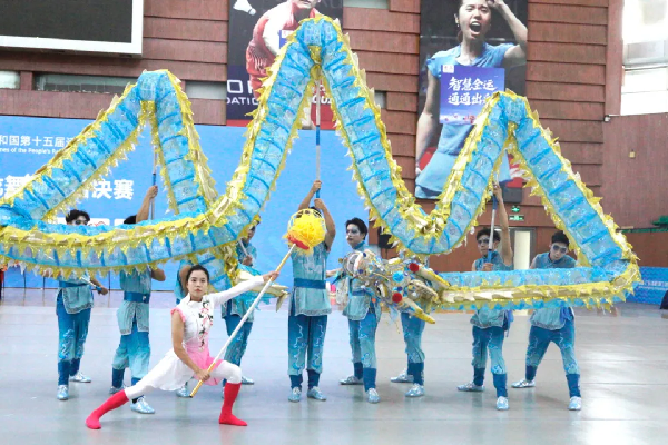 11月13日,在第十五届全国运动会群众展演舞龙舞狮项目赛场,江南职业中学体育教师谢红所在的四川师范大学龙狮队代表四川出赛,经过激烈角逐,荣获舞龙自选项目二等奖。