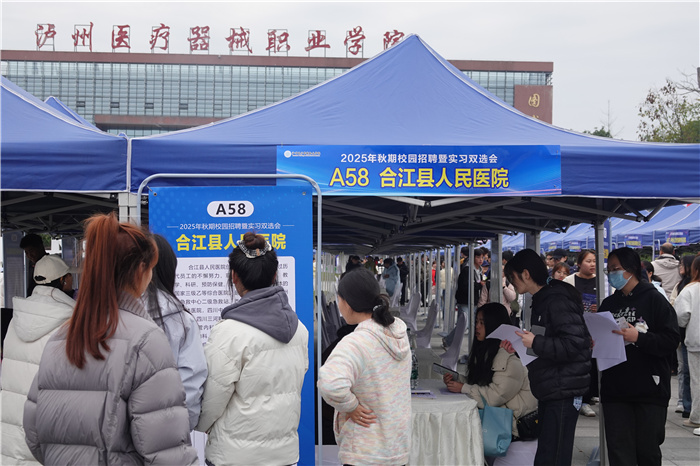 11月20日,泸州医疗器械职业学院举行2025年秋期校园招聘暨实习双选会。来自全国各地的183家优企业和医疗机构携5200余个岗位齐聚一堂,与学校近4500名学生共赴一场人才与机遇的“双向奔赴”。