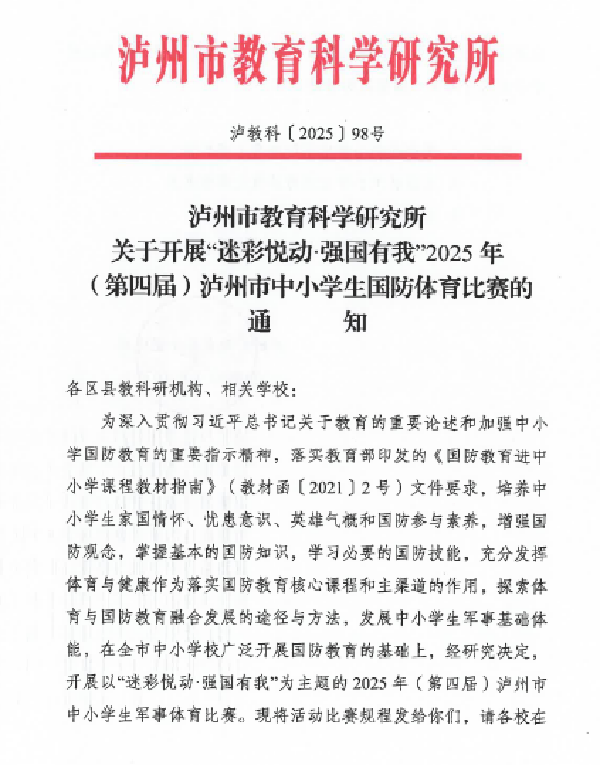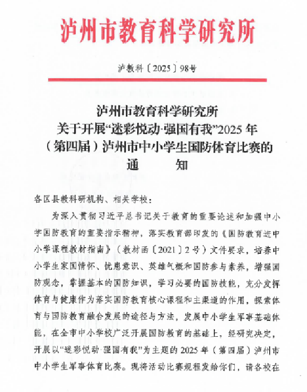 赛事名称: 第四届泸州市中小学生国防体育比赛