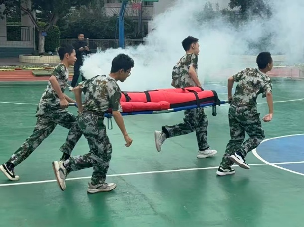 安全防线筑牢:所有参赛学生均购买意外伤害保险;赛前对所有障碍器材、担架、场地进行严格安全检查;学生统一着迷彩服,鼓励佩戴必要护具;现场加强军事化管理,设置“战地休息站”,校医全程待命,备齐急救物资,确保万无一失。