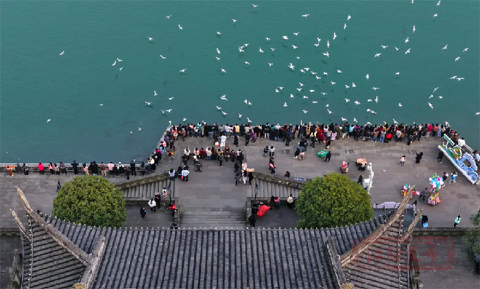市民喂红嘴鸥需要注意正确方式,江边抛投面包,食料大部分都没有喂到,而是直接丢到了江水中,若没有被鱼类吃掉,就会漂浮在水面上污染水体。