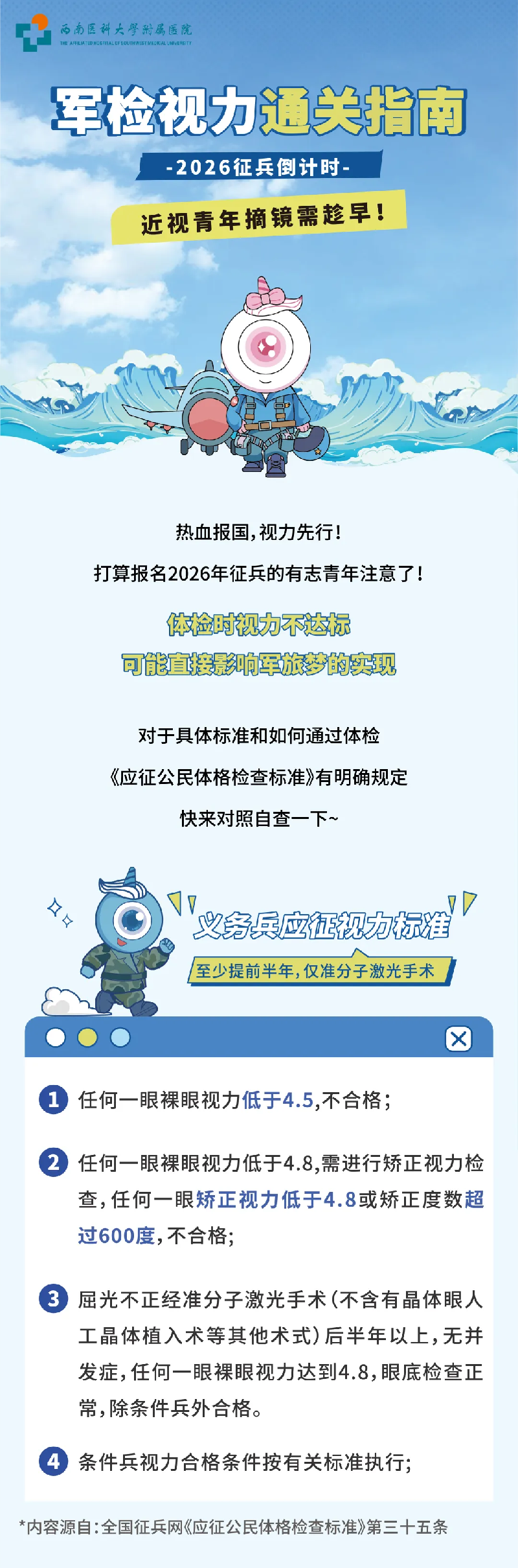 【重要提醒】2026征兵倒计时,视力达标是关键,近视手术趁早做!