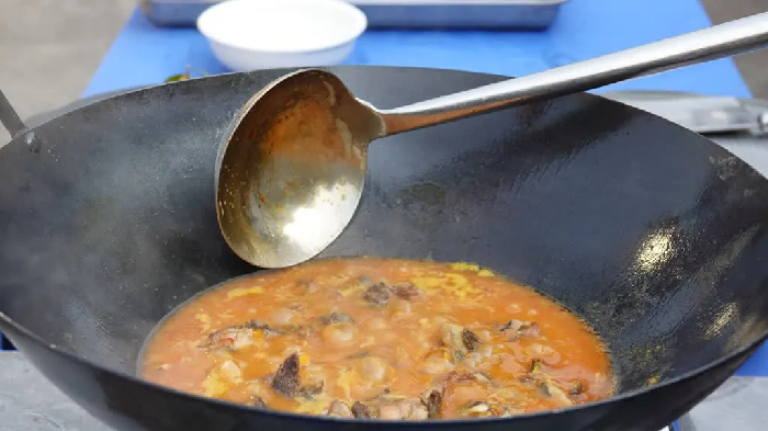 据他介绍,椪柑鸡的做法并不复杂:先将新鲜椪柑剥皮,果肉榨汁,果皮切块备用。热锅下油,放入提前腌制的跑山鸡块,反复煸炒至水分收干,再加入泡椒、姜蒜、料酒、盐等调味料,翻炒入味。最后,倒入椪柑汁与果皮,烧至汤汁浓郁,撒上葱花即可上桌。