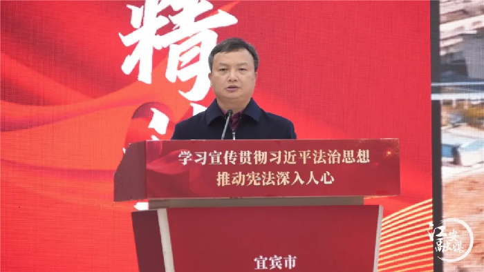 黄金盛宣布宜宾市2025年“12·4”国家宪法日暨“宪法宣传周”活动正式启动。他指出,法律是治国重器,法治是国家治理体系和治理能力的重要依托。全市上下要在市委、市政府的坚强领导下,更加积极主动地学习宣传贯彻习近平法治思想,弘扬宪法精神,维护宪法权威,以法治促进发展、维护稳定、保障民生。在宜宾加快建设现代化区域中心城市进程中,进一步提升平安宜宾、法治宜宾、幸福宜宾水平,让法治之花不断绽放,更加绚丽。