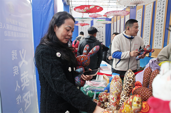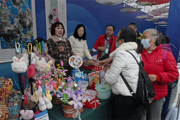 位于广场一侧的政策服务专区,化身“便民服务枢纽”,集中设立了法律维权、政策咨询、心理疏导等五个专业服务点,为残疾人及其家庭提供面对面的答疑解惑与支持。紧邻服务点的是手工制品展示与爱心义卖区。残疾儿童陈施润带来了近30件亲手制作的手工作品,他介绍说:“平时在托养中心老师会教手工,我特别感兴趣,还会上网学习。今天最满意的作品是这个蝴蝶结水晶花瓶,花了将近5个小时完成。”一件件精美的作品,凝结着匠心与努力,吸引了许多市民驻足欣赏、踊跃认购。