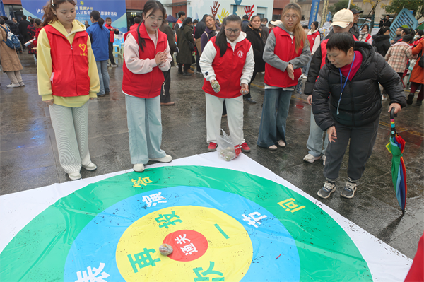 最富趣味的当属沉浸式游园活动区。该区域巧妙地将政策知识普及、健康常识宣传、安全技能学习融入互动游戏中。参与者可通过参与“盲盒套圈”、“点亮希望”手绘、“活力投掷”沙包、“乒乓比拼”等趣味项目收集印章,集满四枚即可兑换精美礼品。现场欢声笑语不断,大家在轻松愉快的氛围中增进了解、收获知识。活动还贴心地设置了补给站,为参与者提供后勤保障。