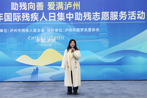 12月4日,“助残向善·爱满泸州”2025年泸州市国际残疾人日集中助残志愿服务活动在泸州励志广场温暖启幕。活动现场分为残疾人风采展示台、政策服务专区和沉浸式的游园活动三大功能板块,同步开展多项内容丰富、形式多样的活动,吸引了200余位残疾人朋友及志愿者参与。