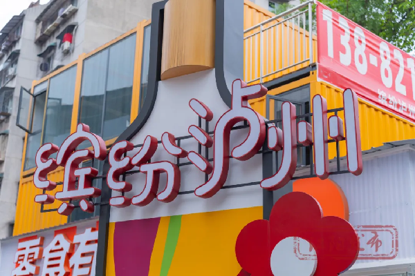 不用走太远,便来到缤纷泸州·构树街。炫彩的标牌为老街增添了新的光彩,5个组团式的集装箱错落分布,成为各个店铺的时尚载体。