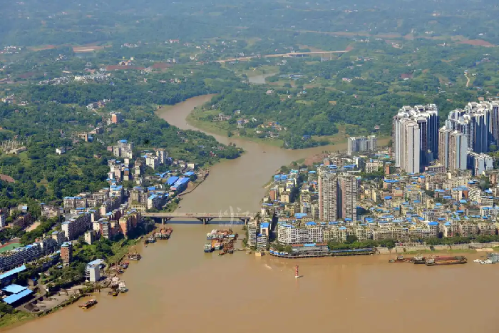 长江、赤水河、习水河三江交汇在合江。图源川江号