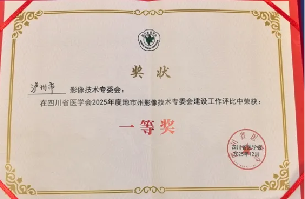 本次会议同期举行了四川省医学会影像技术分会年终总结大会。戴贵东代表泸州市医学会影像技术专业委员会受邀参加年终总结发言。在四川省医学会 2025 年度地市州影像技术专委会建设工作评比中,泸州市医学会影像技术专业委员会脱颖而出,荣获“一等奖”。