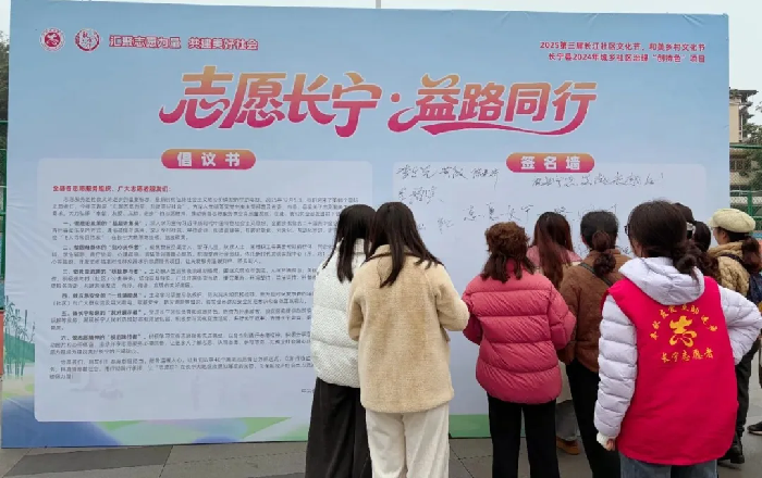 居民与志愿者们纷纷提笔写下祝福、签下名字