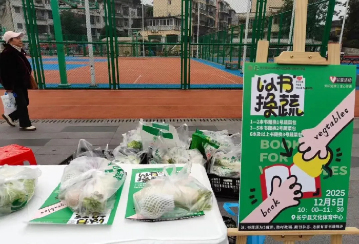 居民们带着闲置书籍前来交换新鲜白菜、萝卜