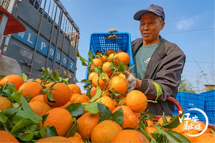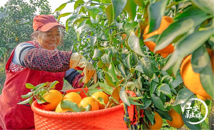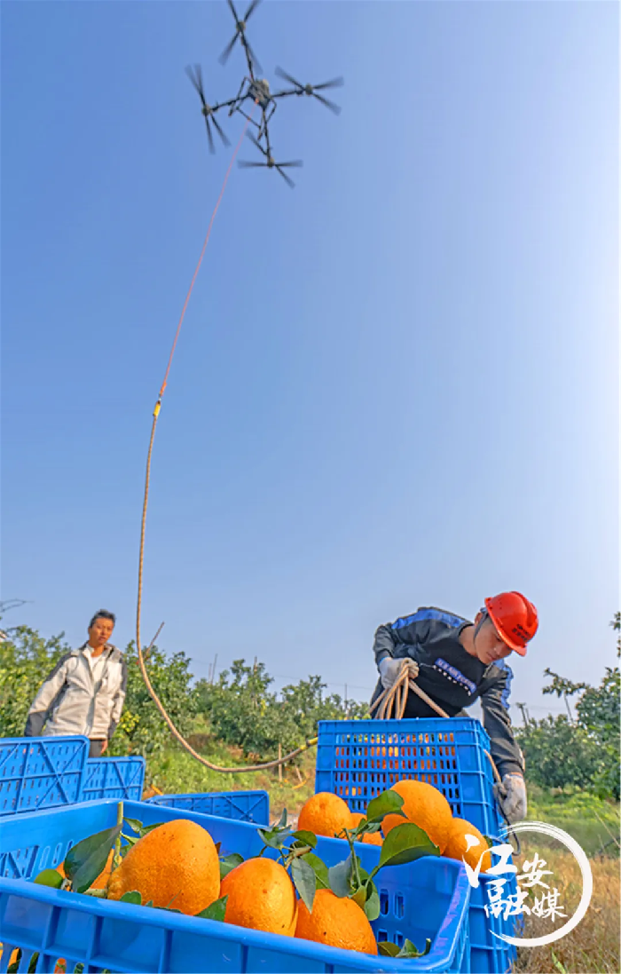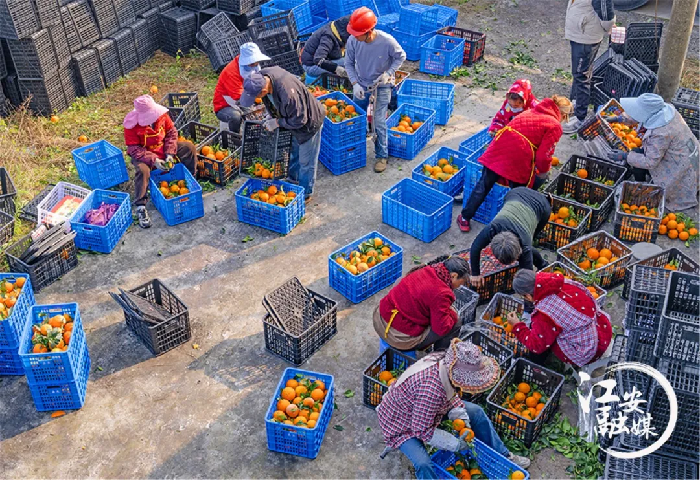 风吹橙子香,丰收满村巷!近日,江安县阳春镇姜庙村嘉果现代农业园区迎来爱媛橙大丰收,工人们忙碌的身影、无人机穿梭的轨迹,与错落的橙林构成一幅生动的民生画卷。